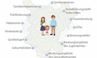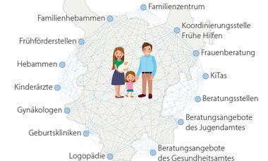 - zeigt Beratungsstellen und Unterstützungsangebote des Netzwerks Frühe Hilfen auf,