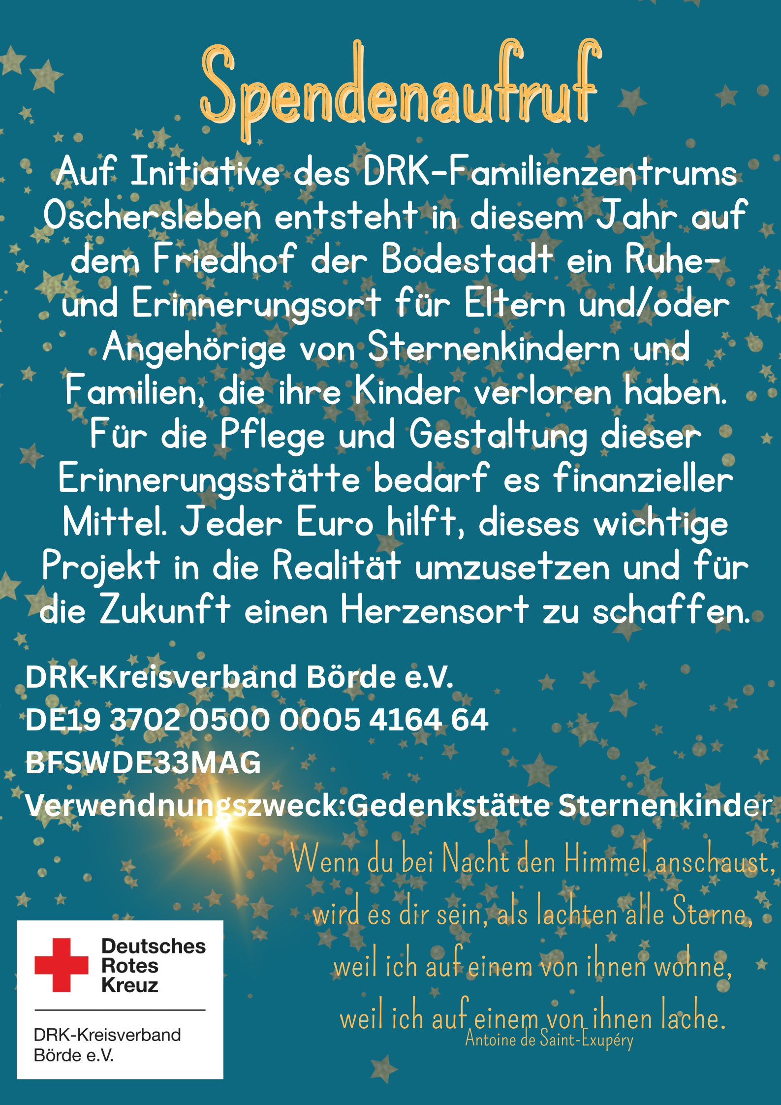 Auf dem Oscherslebener Friedhof wird in diesem Jahr eine Erinnerungsstätte für Eltern und/oder Angehörige von Sternenkindern sowie Familien, die ihre Kinder verloren haben, entstehen.